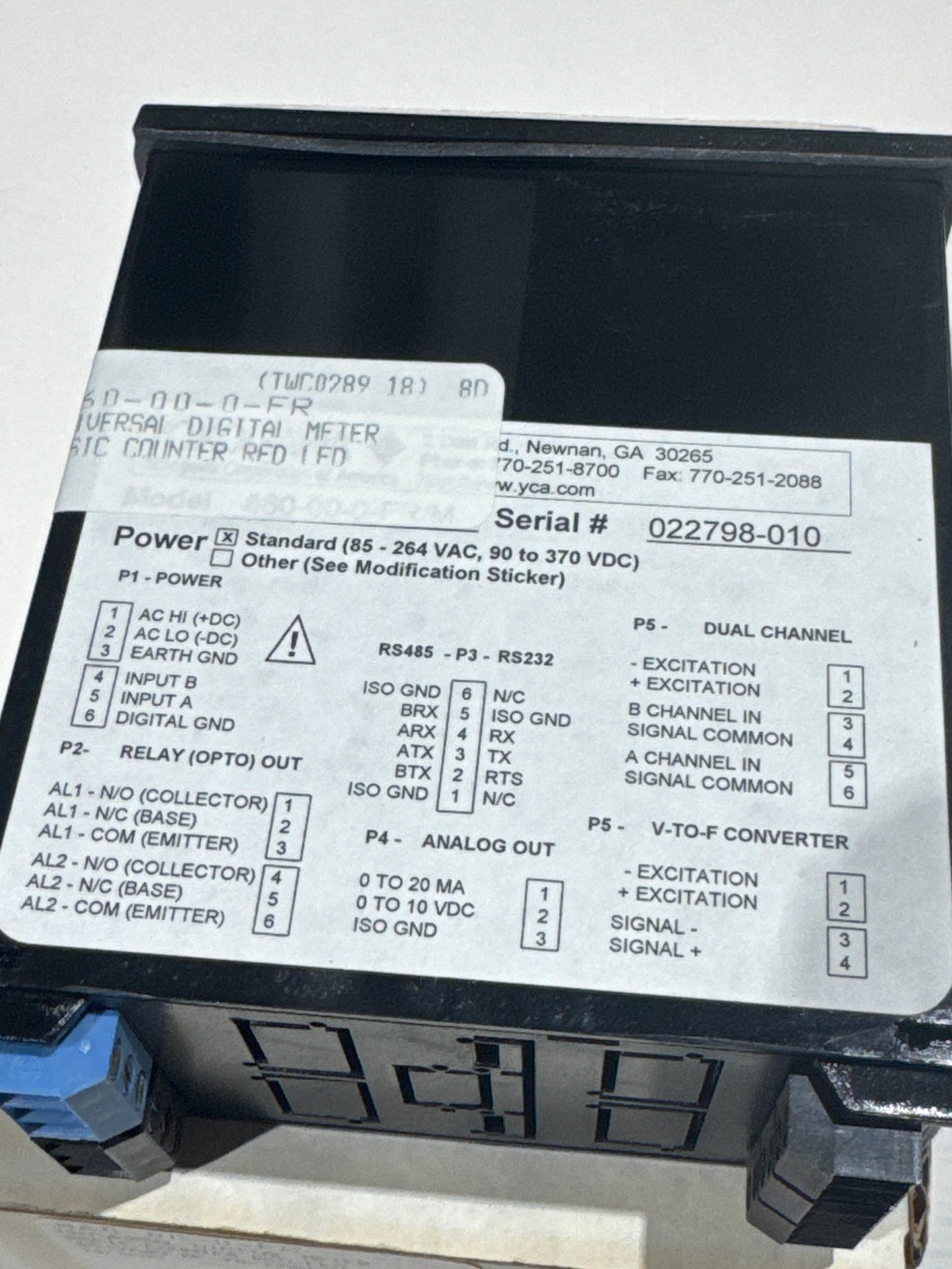 Y860-00-0-FR - YOKOGAWA - DIGITAL COUNTER, Red LED display, 85~264 VAC, 90~370 VDC